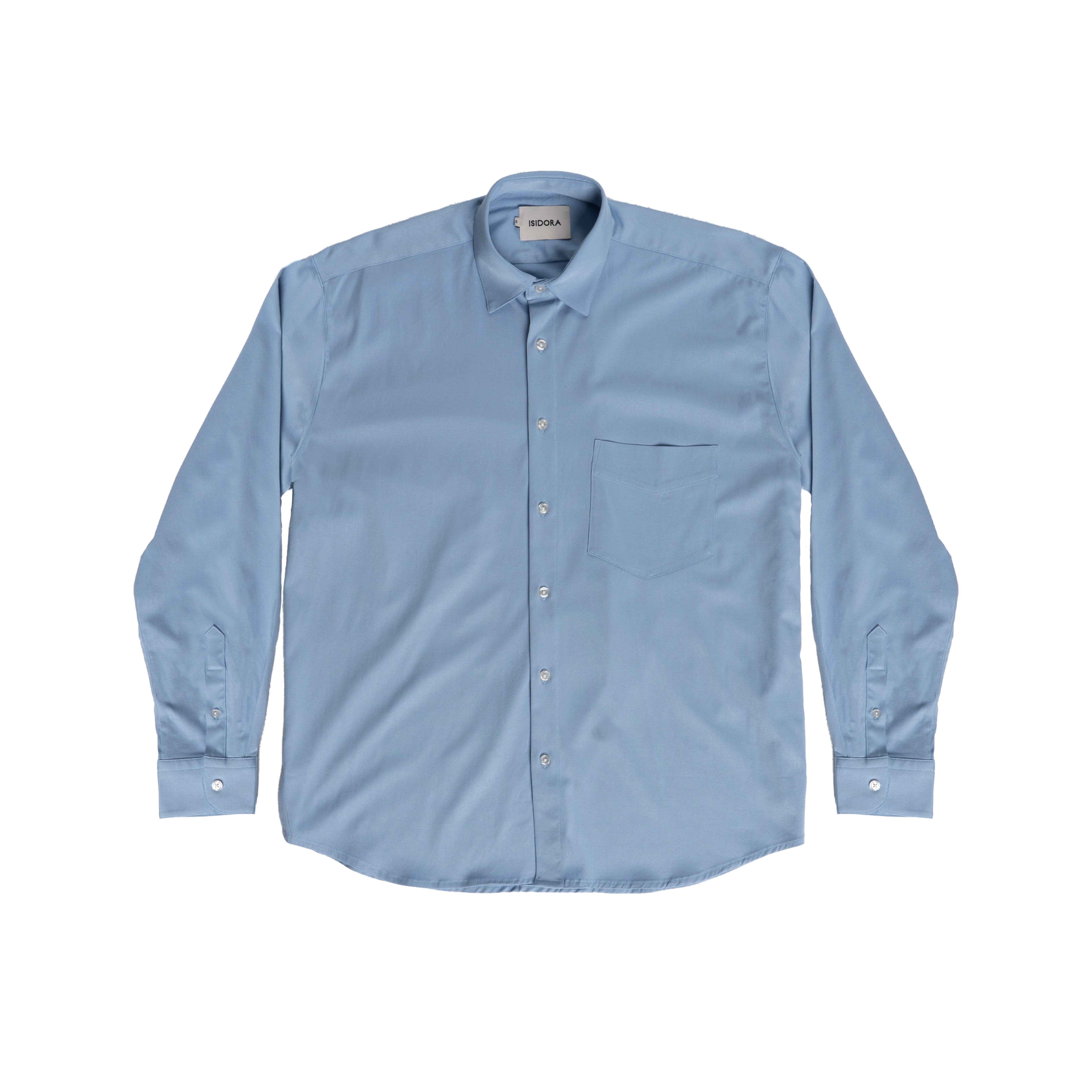 In our airy sky blue colour, this unisex shirt offers both comfort and style with its classic long sleeve button-down design and chest pocket.